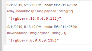 else msg.payload=”{rgbperm:0,”+ global.get(“deskRed”) + “,” + global.get(“deskGreen”) + “,” + global.get(“deskBlue”) + “,120}”;