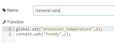 and if you need a global variable that can be accessed anywhere within Node-Red including other flows – I use them all the time for things like thermostat objects etc… use global.