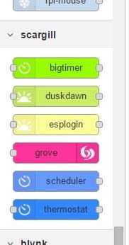 I’ve not yet put most of these in repositories but then once you have them – you have the source code anyway… if you don’t want them sitting in their own “scargill” section – go (carefully) into the .js file, find “scargill-input” and change it to… well, “advanced-input” or similar – restart Node-Red and Bob’s your uncle.