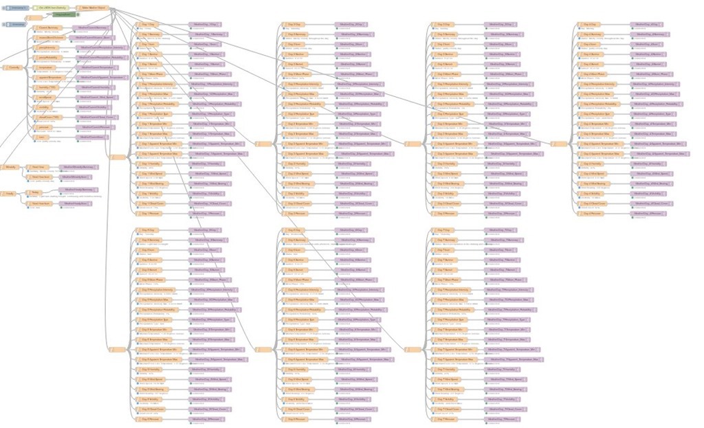 I’m new the the Node programming, and to programming in general. In your one image that shows the “timestamp”, “Function’, to “weather1″, etc, what is the node that is used for the ” weather”?