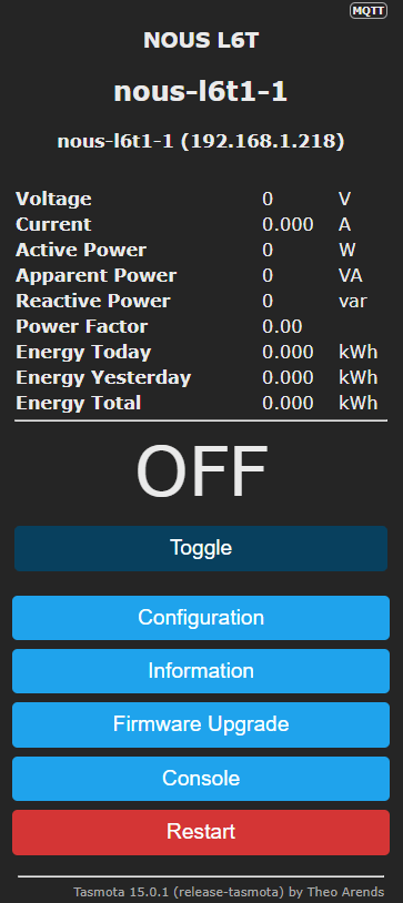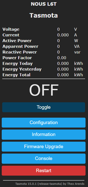 And there it is – version 15.0.1 fully updated Tasmota. See on the image on the right – the bottom line shows the Tasmota version.