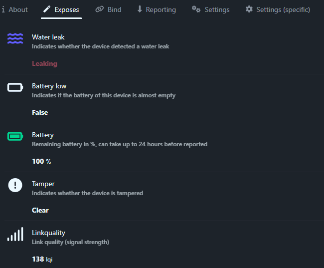 I believe this is the smallest, neatest leakage sensor I’ve come across to date. I’m not sure about the battery life claim of 3 years but time will tell. Sonoff’s SNZB-05P comes in second for size but is not quite as easy for battery change – the Sonoff uses the more expensive CR2477 battery.