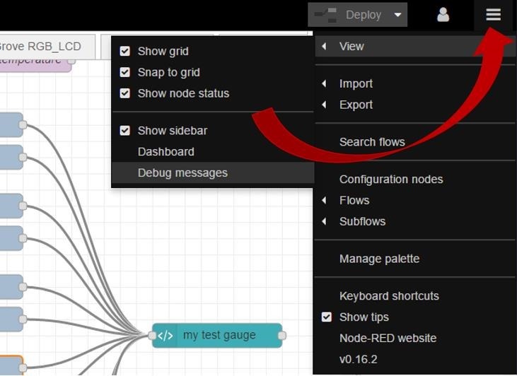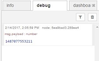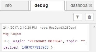 Correctly set up, on the right of the Node-Red screen, you can see (or make available via the top-right three horizontal bars – view – “debug messages”) a debug window and simply by pressing that button-like item to the left of the inject node, you can put a timestamp into the debug window as such: