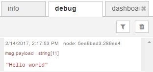 In general then, you can fire out msg.topic and msg.payload from the inject node. Instead of putting out a timestamp, you can put out a string (for example “Hello world”) and this is output in msg.payload.