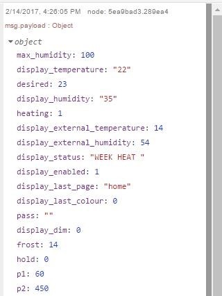 Armed with the above, which contains in this case lots of information about the state of my house… I can send that – either manually or of course in a timed fashion, to the debug node.