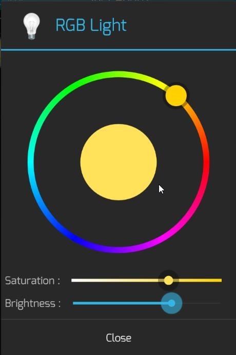 So whenever you make a change to the on-off state of the control in the APP, or change colour, brilliance or saturation – you will see a new RGB value come out of the debug.
