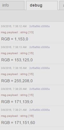 msg.payload = ‘RGB = ‘ + parseInt(hexColor.substr(1,2), 16) + ‘,’ + parseInt(hexColor.substr(3,2), 16) + ‘,’ + parseInt(hexColor.substr(5,2), 16);