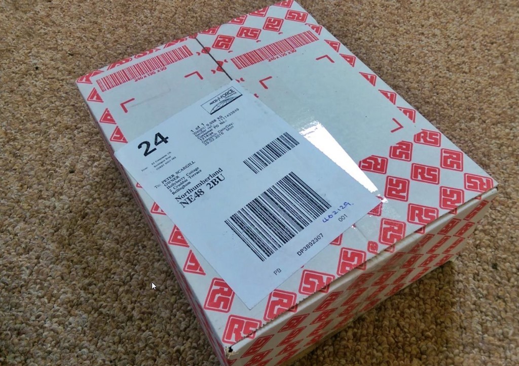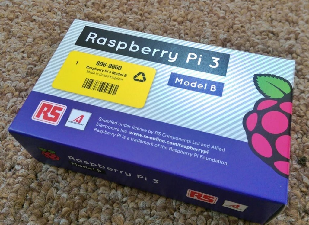 After a couple of tense hours, the doorbell rang this morning – the RS delivery guy with my brand-spanking new Raspberry Pi 3.