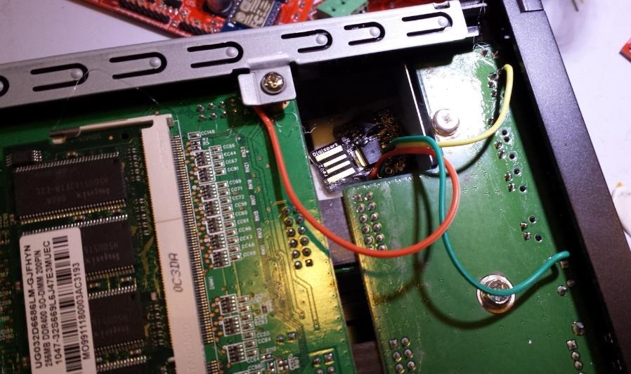 Spot of glue gun glue and double sided foam to hold the little board in place, side back on, power up and… success.