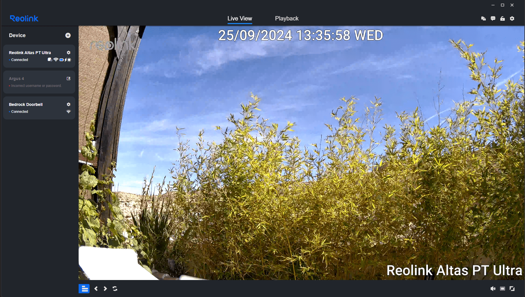Daylight imagery is hi-def and clear. At this point I decided to switch to the Reolink PC APP – only to find an update was available – time for coffee.
