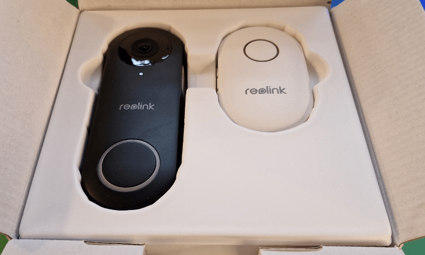 On opening the box for my new Reolink WiFi Video Doorbell (they have POE and WIFI versions – mine is WiFi but it seems to have an Ethernet connector so they may be one and the same thing) I noted the doorbell and chime along with multi-language instruction manuals for both.