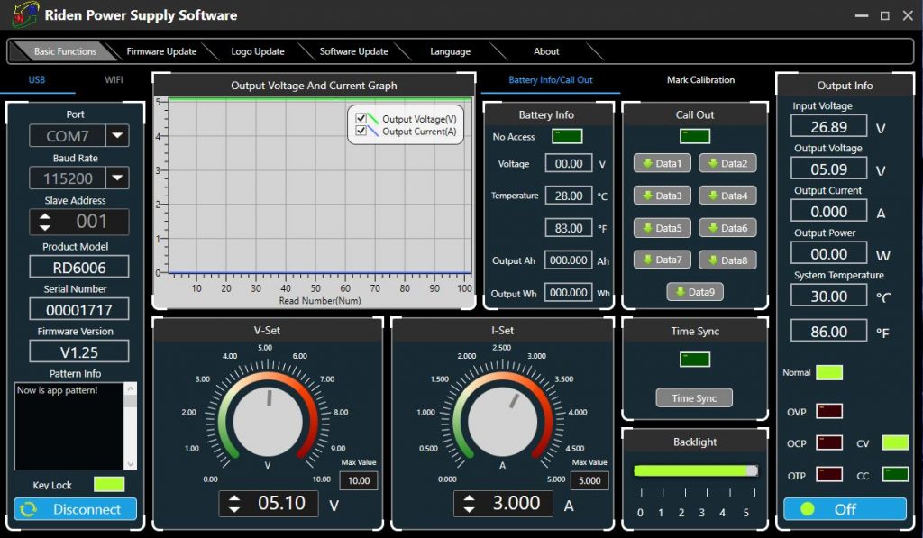 Now I can set voltage and current limits from APP (also shows graph of V and I)