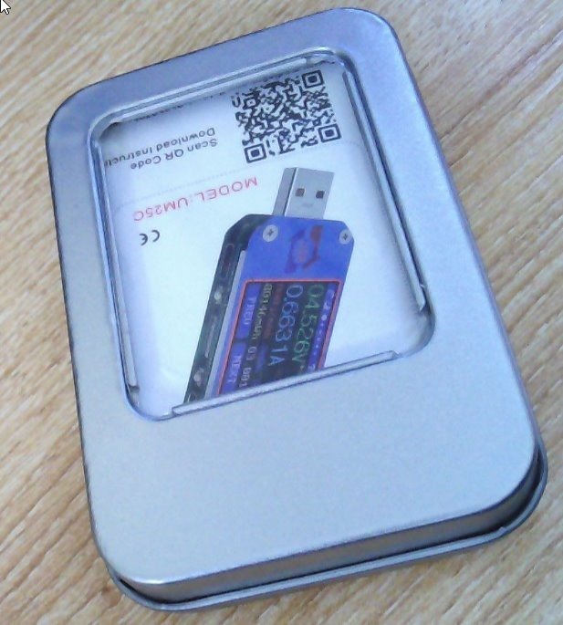 The Ruideng UM25C USB tester unit comes in a handy metal container without leads. There is almost no info with it but a PDF document is available online.