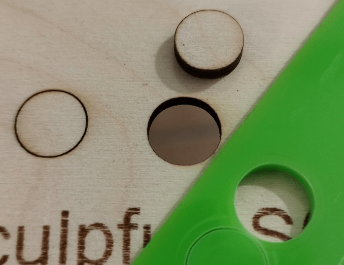 Those holes above (and the wooden and acrylic cut-out pieces) are approx. 10mm dia.