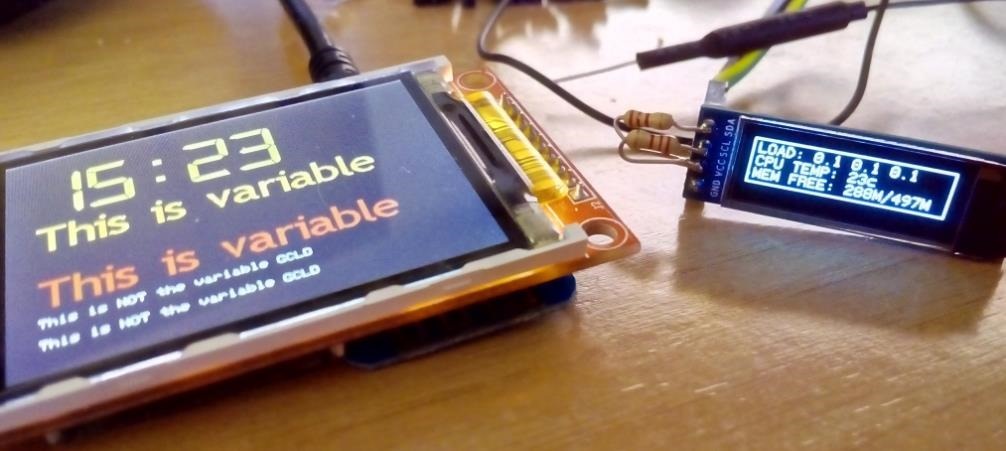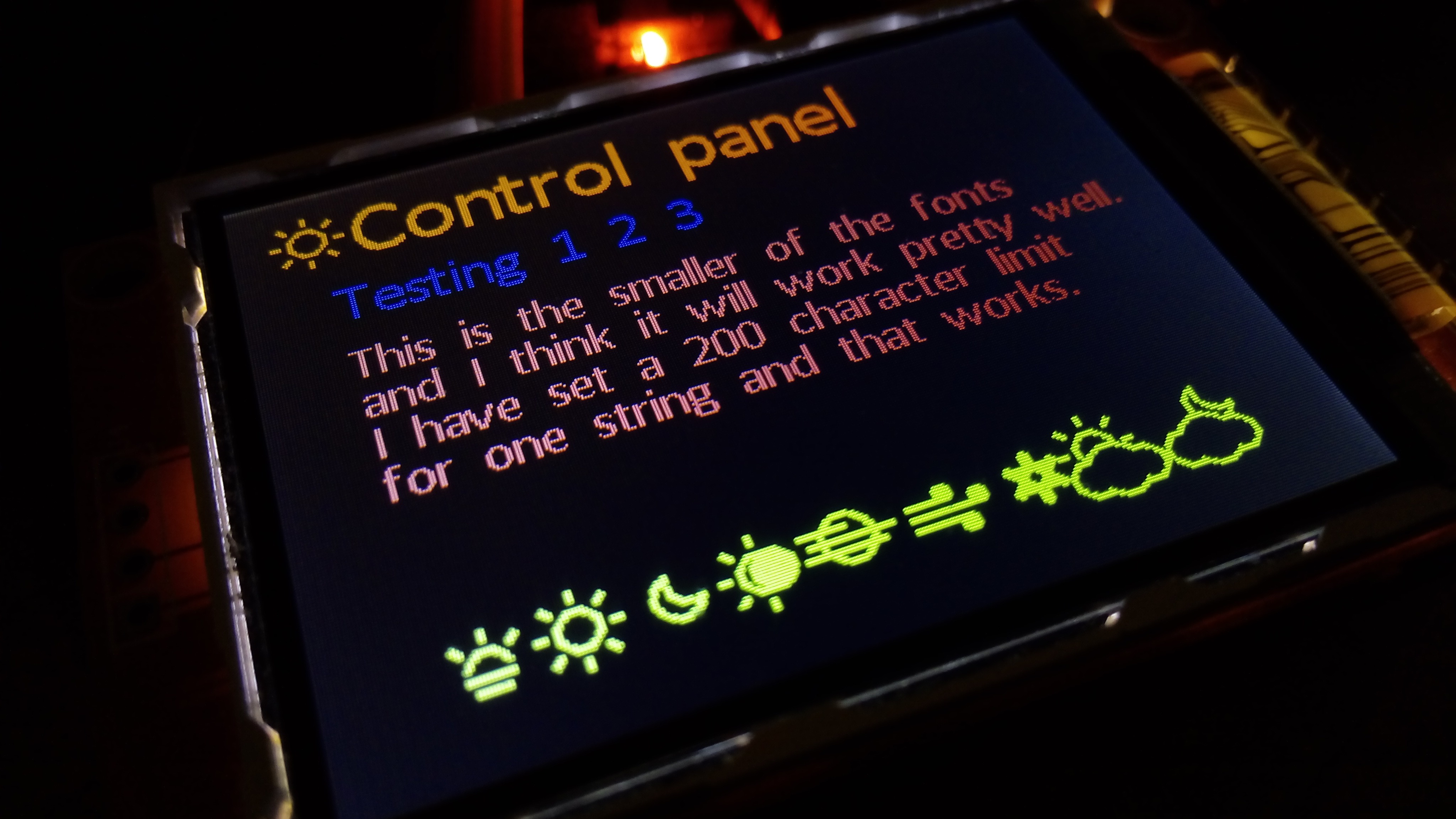In the case of the bigger display which has a WEMOS D1 glued to it’s underside and uses my normal home control C code (which is on Bitbucket), now I’ve added an extension to the high speed VT100 terminal part of the code to introduce landscape and portrait not-so-high speed text and rectangles etc… It’s very nice and after a lot of head-scratching is now fast enough for general use.