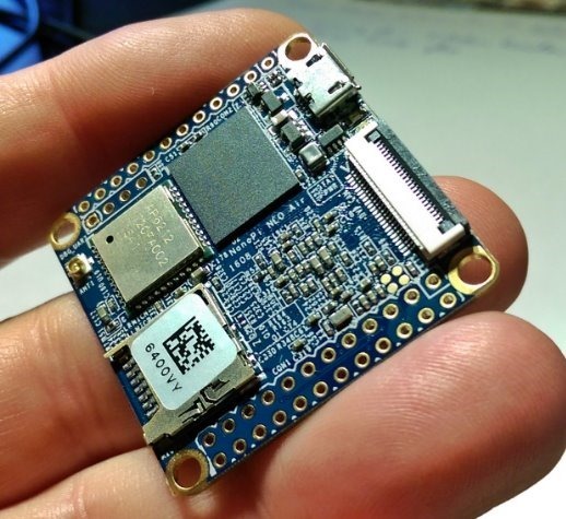 When it comes to size, this one is as good as any… the FriendlyArm Nano Pi Neo Air.