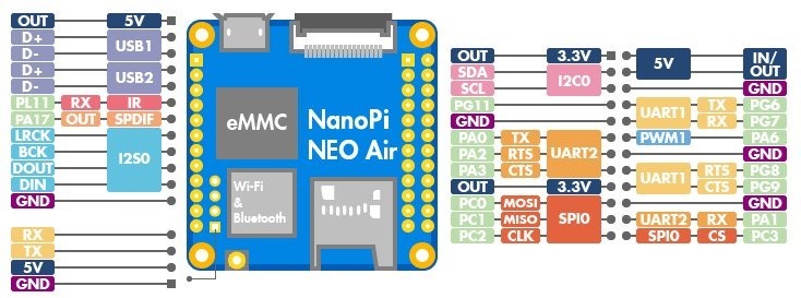 Just a reminder: Allwinner devices receive great community support and you should find comprehensive device documentation in linux-sunxi wiki: http://linux-sunxi.org/FriendlyARM_NanoPi_NEO_%26_AIR (just use the search bar in the upper right for other devices)