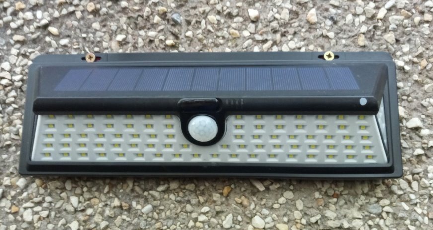 First item in the mailbag today (October 20, 2018 – but see update) – a solar powered 90 LED motion sensor wall light from Banggood – https://goo.gl/6MuhMc