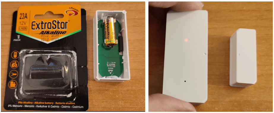 As far as I could make out, the Spanish-speaking Chinese fellow tried to tell me the 23A battery was no good but I took a chance – at €1 it beat Amazon hands down. It’s a little wide and so a tight fit, but the exact length and voltage so it is ok. Separating the magnet from the transmitter unit produces an orange light – no such luck when bringing them back together but I’m assuming that’s normal.