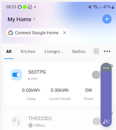 At this point, the eWeLink screen on my phone showed this… I couldn’t resist clicking on “Connect Google Home” – at which point the screen now showed the S60TPG added to my Google Home unit. At this point also my new BASICR4 also appeared in the Google Home setup.