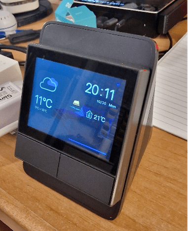 NSPanel, originally intended for wall mounting, powers up in Bluetooth-pairing mode the first time. Once set up in the App you can add the temperature controller (“thermostat”) and a range of widgets to control other devices including Sonoff smart-lighting and smart-power control. At the price of this – many companies charge the same or more just for a thermostat – though the thermostat controls on NSPANEL even in October 2023 remain very basic. I think Sonoff added this feature then lost interest in it – or maybe just don’t know much about thermostats – odd considering, after receiving some Nextion displays from Sonoff to review, way back in early 2016 I created a fully functional Thermostat using an ESP8266 as a controller and the Nextion for the display – and the Sonoff NSPANEL uses a much more powerful ESP32 with the display being based on their Nextion technology. Maybe they simply didn’t think that adding a proper thermostat into the mix was interesting.