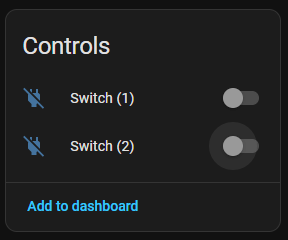 There are indeed 2 separate switches in Home Assistant… just a matter of getting that renaming going – check out my blog entry on the underlying controllers – cracked it once, I’ll crack it again.