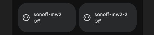 Ok, I decided to delete the device and start again – this time calling it sonoff-mw2. In the Google Home App… – Google created that second entry – for the second output…