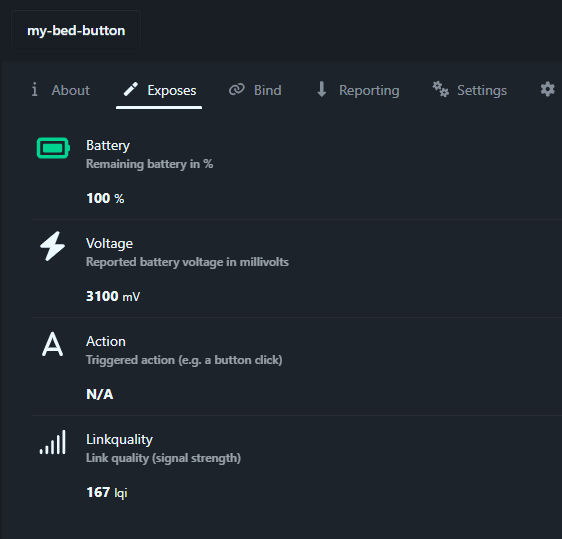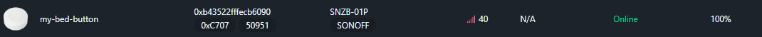 Within seconds that “unsupported” disappeared and I could rename the device to something useful like “my-bed-button”. Oh and I’ve just realised something – If I don’t do that renaming quickly – the device disappears from the list again. Ok, done – and while I was on, I ticked to update the Home Assistant entity. Done.
