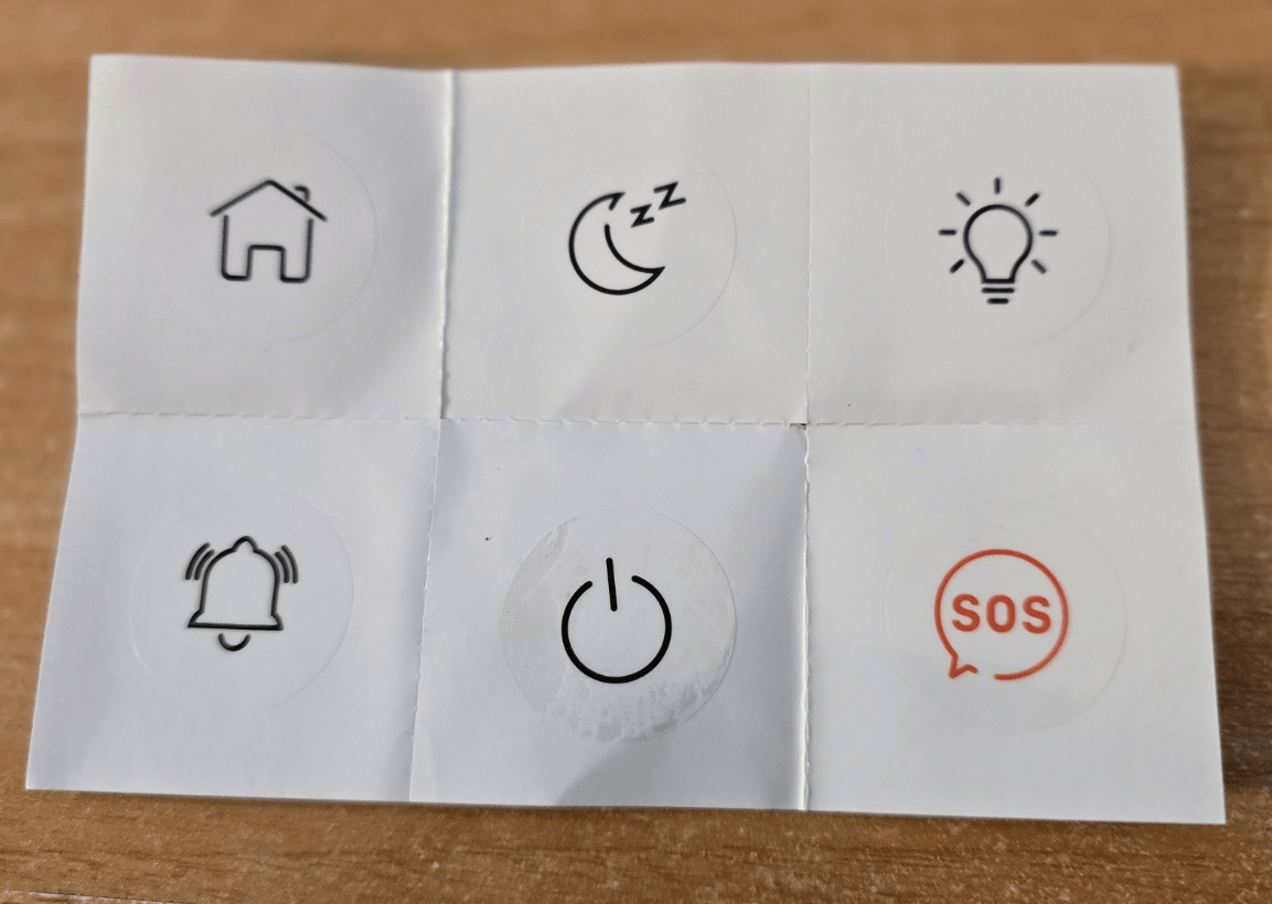 I just realised – you get a set of button stickers to go with the button. Handy. That Zzz will do for my all-off action.