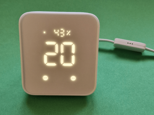 I looked at the display on the Hub, thinking “this doesn’t seem to do much – no temperature display, just tiny ON and OFF indicators. Oh yes it does – by default, the ON/OFF indicators turn the temperature and humidity display one and off.
