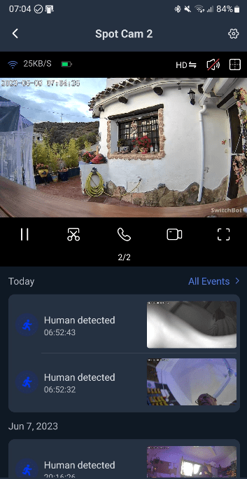 The camera firmware is now version 3.1.33 – 1.1 and I’m testing the latest version of the camera – no issues at all so far – The Android App (still on my soon-to-be-replaced by S24) Samsung S22 Ultra – is working just fine. As you can see, this June’s weather is very different to the same time in 2023 – it is typically 35c+ mid-afternoon right now and the camera is doing well, directly exposed to Spanish sunshine. The 2K resolution of the camera is “ok” – price is now around 109 Euros.