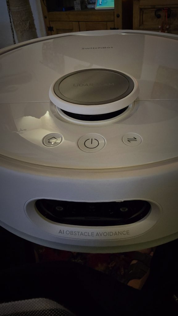 From now on I’ll refer to the vacuum unit as Robbie for simplicity. Having placed the charging unit in that convenient spot in the living room and having given Robbie a short while at the dock to make sure it had some charge, I then hit the power button on Robbie which then went off all by itself to fathom out the room layout – using Vision SLAM, a technology that allows Robbie to create a map of its (initially) unknown environment and simultaneously track its own position and orientation within that map, using only visual data from the front camera which has 2 bright lights which only come on when needed.