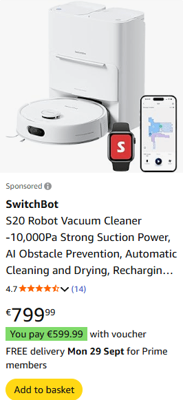 First things first – 800 Euros not £800 and in reality with sales more like 600 and I think they’ll likely adjust prices in time – our original Xiaomi dropped a lot in 4 years. I’m retired so no… but when running businesses – sure. We got the Xiaomi in 2021 and it is as new even now.. apart from a few scuffs thanks to banging into walls and furniture. I look after the brushes etc and spares if needed (we didn’t thanks to regular maintenance). I’ve no reason to believe the Switchbot unit will be any different. I’ve lots of Switchbot stuff and what I have is high quality.