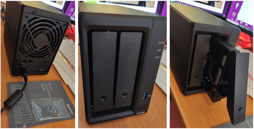 The DS720+ is very neat despite being largely made out of plastic with an internal metal cage. I missed out on the golden age of computers where they were all covered in flashing lights – there’s just the one blue power light and three status lights – that’s it. I guess I could fit a LED strip on the underside for that “Time Tunnel” or “Voyage to the Bottom of the Sea” look…
