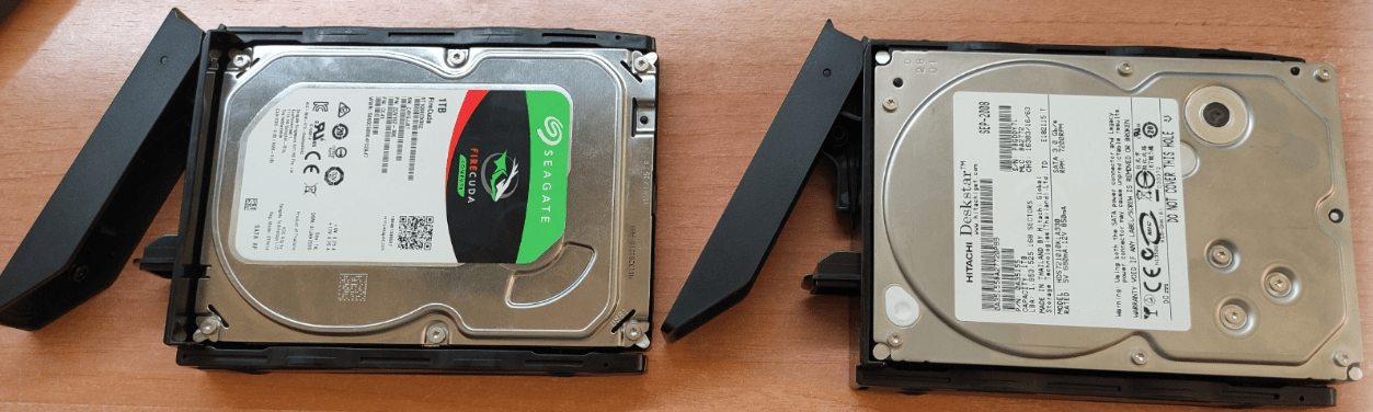 I’ve never needed to store a lot of movies (thanks to modern alternatives) so I have a couple of 1TB 3.5″ drives in my UK DS214+, running Raid 1 (i.e. you get 1TB out of the deal – and everything is replicated across the disks such that if one disk goes down the other still has all the info.