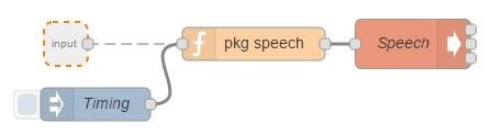 Note the difference. In this version, an inject node is used to send a blank message every 3 seconds. If a message comes in – it is put in a queue, if a blank message comes in the queue is checked – and speech sent out if there is anything there, using the wonderfully elegant combination of arr.pushj and arr.shift – see the code. The only exception being if the message is urgent in which case it is sent immediately.