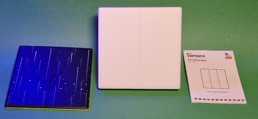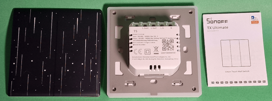 I have in front of me the new TX Ultimate Smart Touch Wall Switch from Sonoff as well as the equally impressive dark replacement cover.