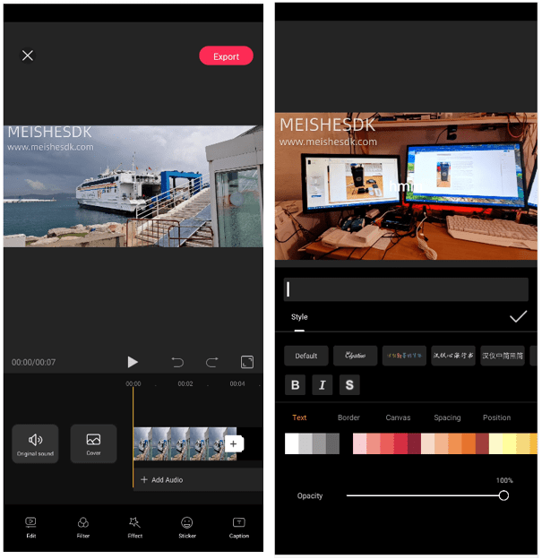 At first I was confused as to why ANY video I brought into the S1 APP for editing seemed to have a logo stamped on it (MEISHESDK)… check out these screenshots …