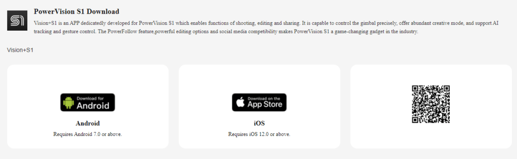 What I HAVE realised in March 2023 is that the PowerVision S1 AI gimbal can be used without their APP. This limits use a little but of course pan and tilt on the Gimbal still works perfectly and the start-stop control works because it can talk to the phone via Bluetooth.