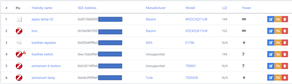 Is that it? Yes but then you need to DO something with them. The Zemismart-6-button device, when clicked, showed itself but said “not supported” (as did the now-removed Ikea switch) so that’s out until I get the Zemismart hub – but to be honest it was disappointing that it does not work with Zigbee2MQTT – which knows it exists but that’s about it. My multi-use Aquara wall buttons and other Aqara devices DO work with Zigbee2MQTT. Let’s turn to the Zemismart LAMP.