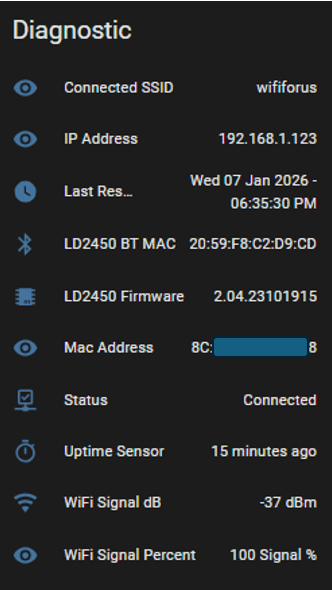 Looking at the new device in Home Assistant, I find a large selection of entities to play with – just like the Apollo units.