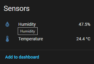 It’s there.. humidity and temperature sensors along with the various configuration options – all there. It could be nice if the battery state sensor was available as well – I’ll ask Sonof while I’m asking about that C to F anomaly.