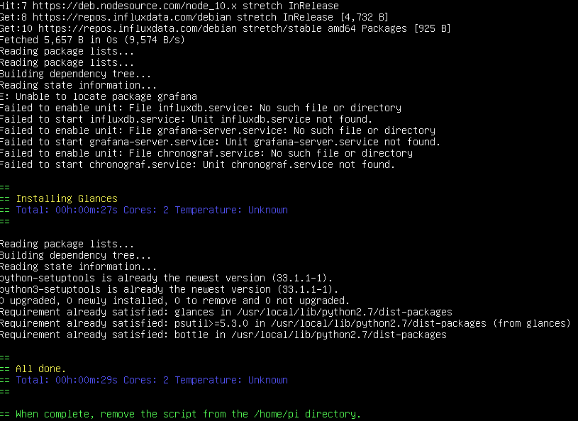 For me – on RPi4 2G, the script just worked perfectly EXCEPT for Grafana – as they made a change. After installing the script and making sure all is ok, i.e. Node-Red etc.