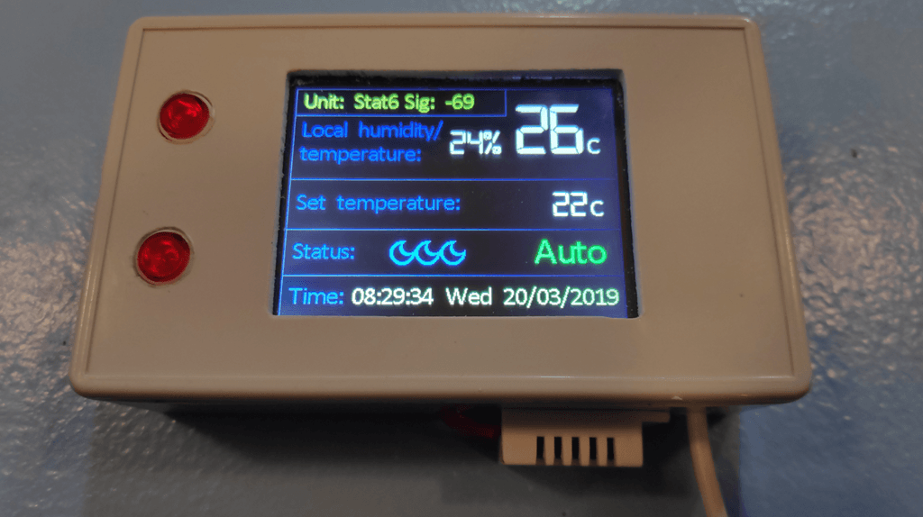 April 2020 – I’ve just been putting the finishing touches on a new touch-switch version of the stat, still using ESP-GO. I had planned to do this with Tasmota but it seems that the ILI9341 installation in Tasmota isn’t ideal for the job. The ESP-GO implementation on the other hand is ideal for this application.