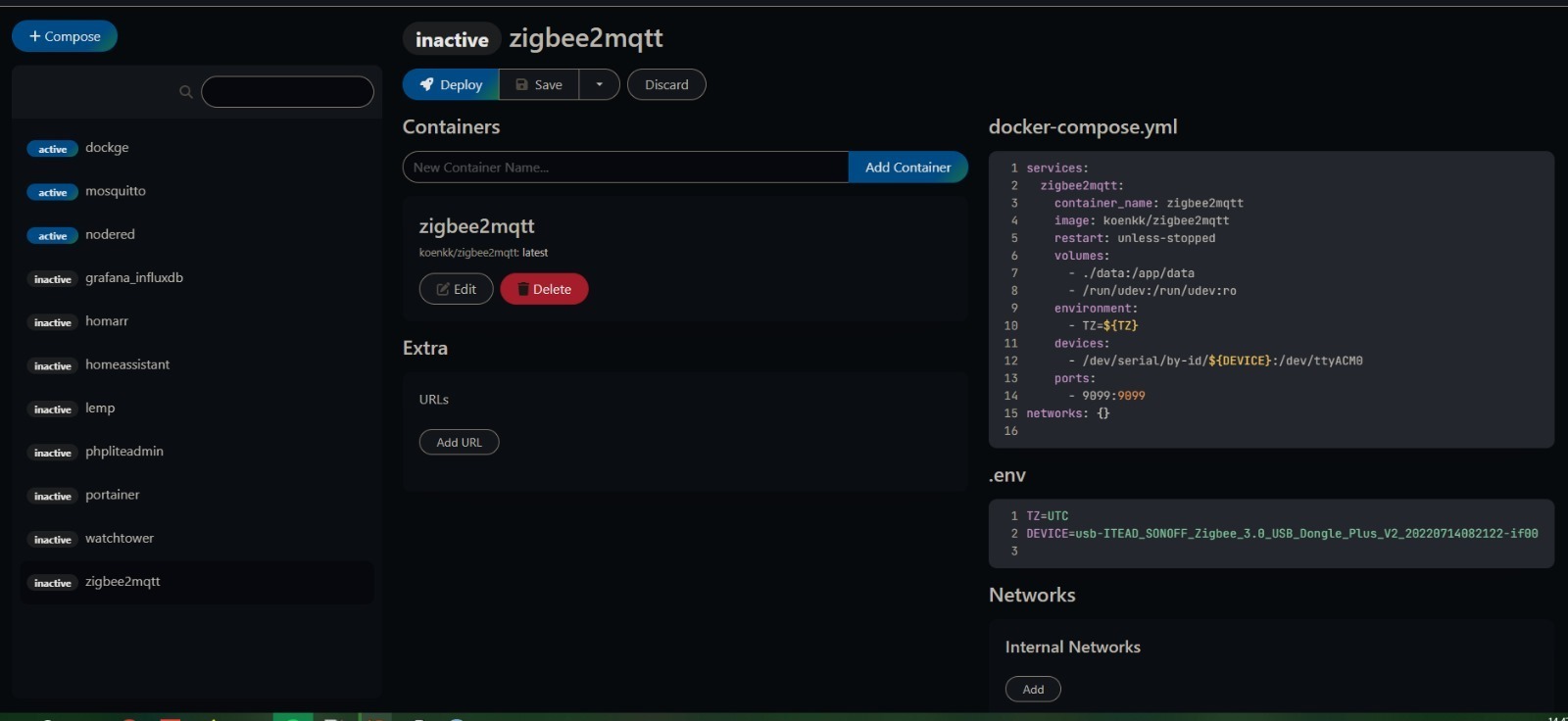 Starting with my Raspberry Pi4 32-bit working Bullseye installation, I have to say I was terrified at the idea of migrating all my Node-Red and Zigbee2MQTT stuff over to the new Pi and OS version – even on a new IP address – but it’s done and thanks to Antonio for the push and his work on Docker. I’ll try to not miss anything out as I go through this.