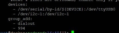 if this is not enough and lacks permissions, you need to check which group is that device into on the host, and add that to the same block in the docker compose which already lists the “dialout” one, on a new line