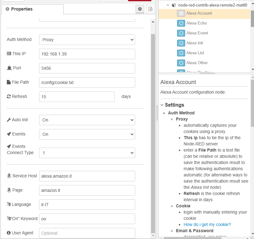 btw i remember i had similar issues, they were caused by the old, unsupported, node used… check one of the most recent nodes, in particular one of these (open nodered palette, search for alexa remote, look at their last update timedate):