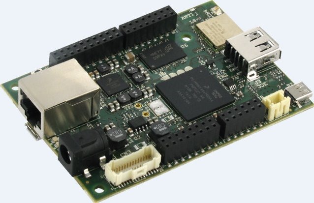 The board is powered by a 1Ghz ARM Cortex-A9 and an ARM Cortex-M4 I/O real time co-processor which can run up to 200Mhz.