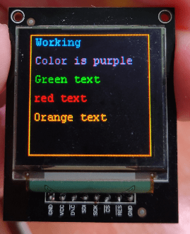 The little 96*96px SSD1131 board has good, solid colours. Although the purple rectanle looks washed out in the photo here, it is absolutely not, in reality.