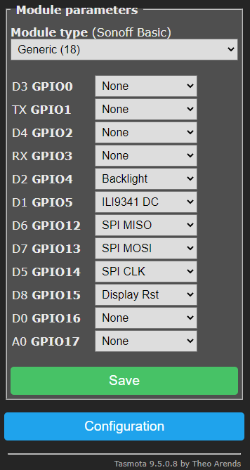 As soon as this lot ends up in tasmota-display.bin the ILI9341 wiring to achieve all this will be: